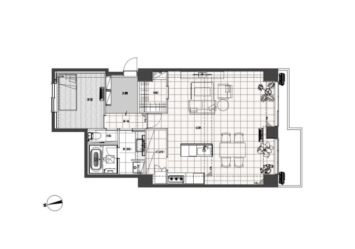 マンションそのものが持つ味や形を生かしつつ、無駄をなくして単純明快に思い切りの良い計画に。