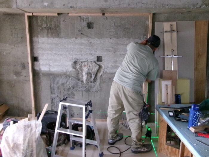 骨組みの段階でそれが出来ていないと、仕上げで取り付けるものなどにしわ寄せが来ます。慎重に慎重に。